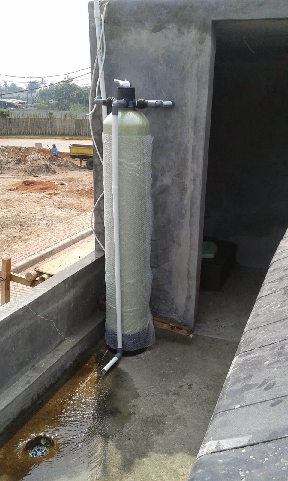 Instalasi yang kami lakukan langsung dari pompa air baku sehingga air yang masuk dan ditampung di toren sudah bersih. Untuk masalah air yang kami hadapi diperumahan Cluster Central Karawaci sedikit berbau dan sedikit mengandung zat besi, sementara diperumahan Dasana Indah blok RG1 kondisi air terlihat kuning, berbau dan terdapat endapan pada tangki.